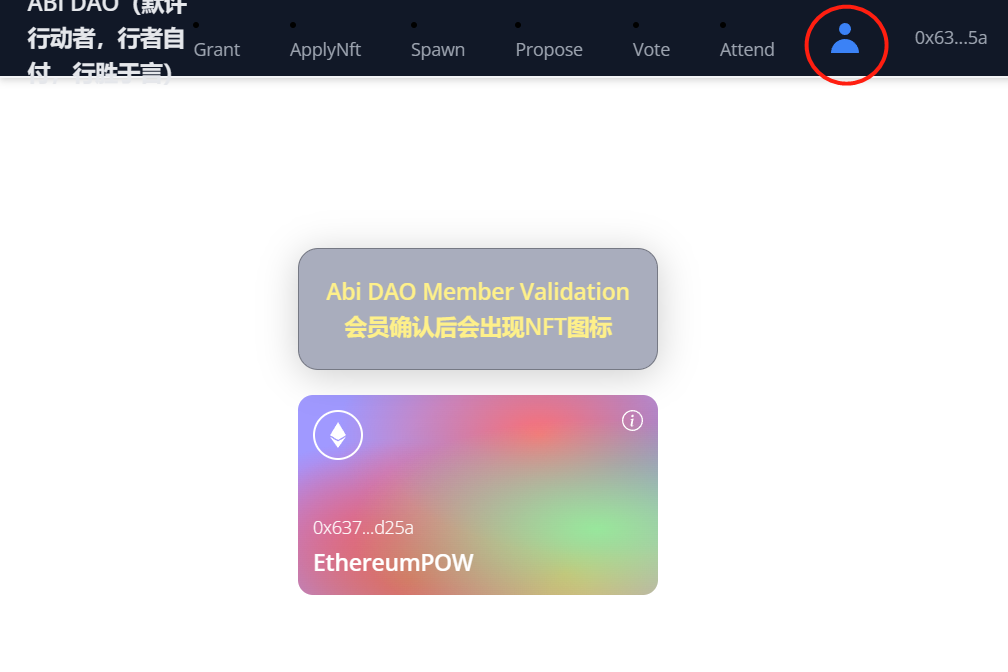 1. Open the AbiDAO page, if you are already a member, your personal profile will display the member NFT logo. If not, it will appear as shown below.