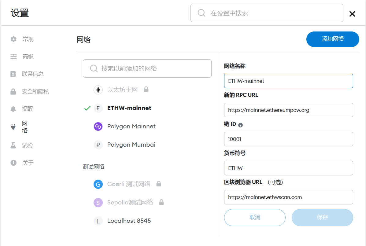 2. Add ETHW into MetaMask.